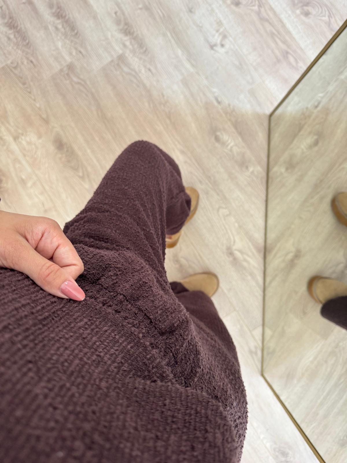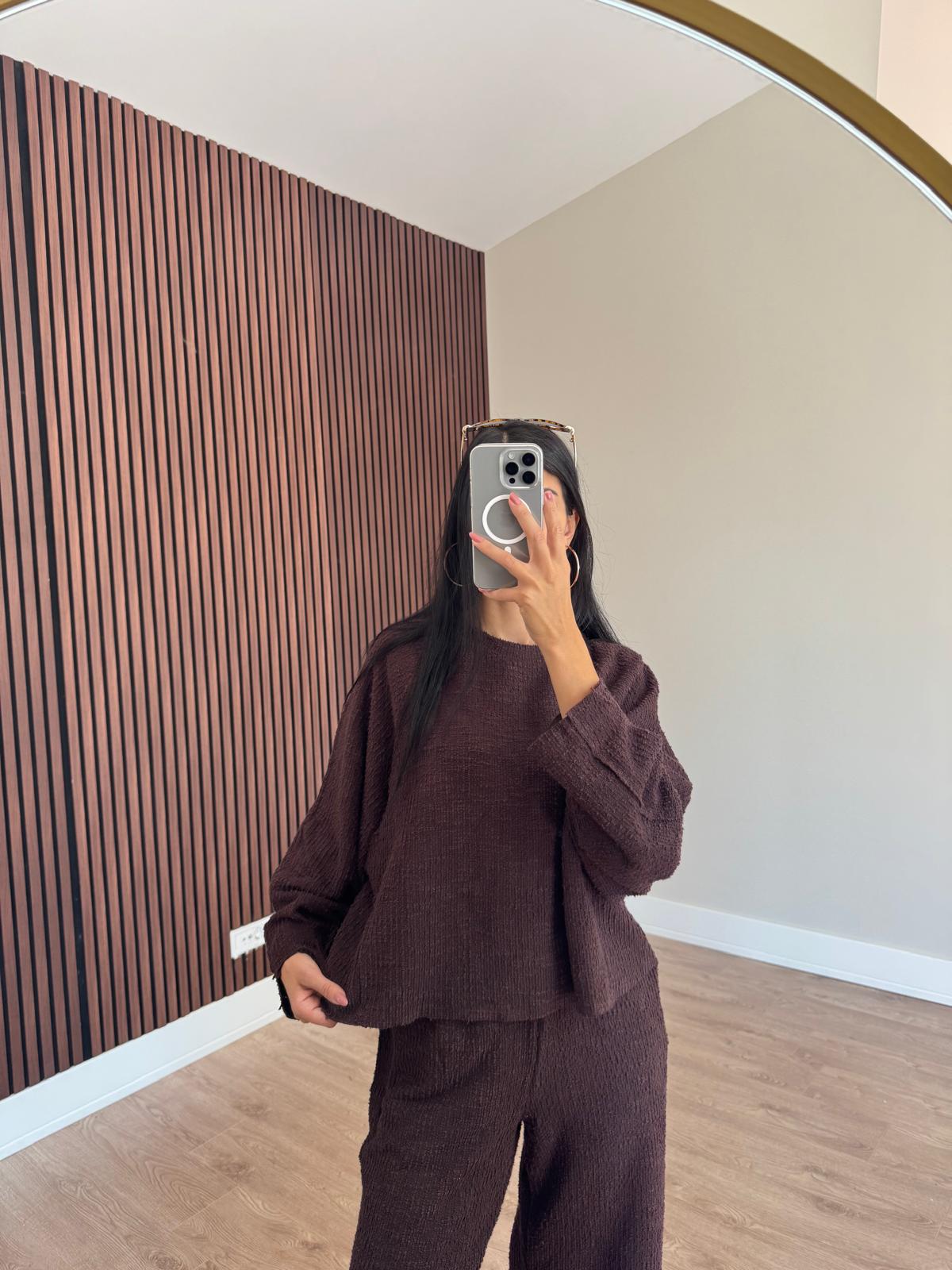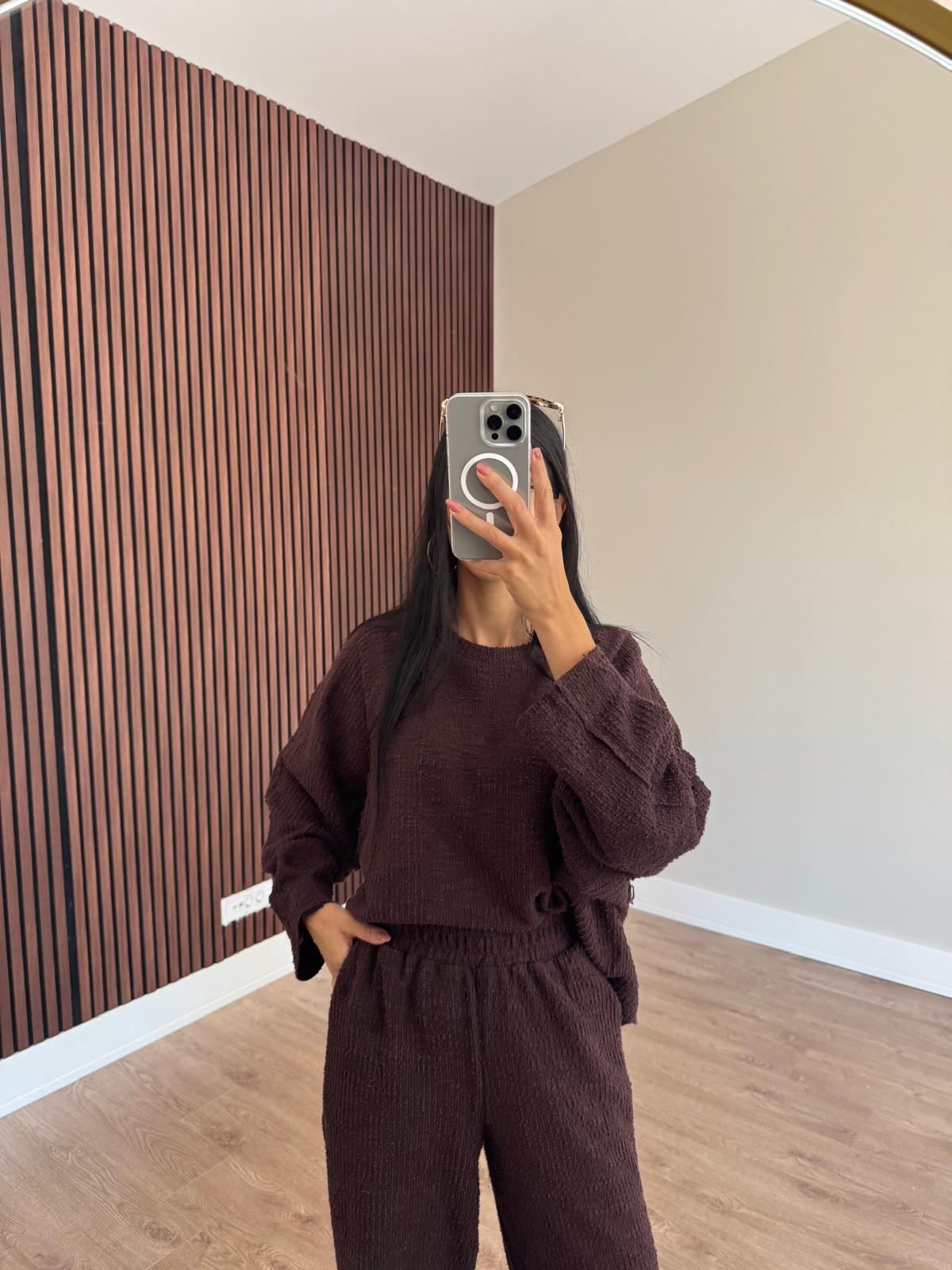 Acı Kahve Kazak Beli Lastikli Pantolon Buklet Kumaş Takım