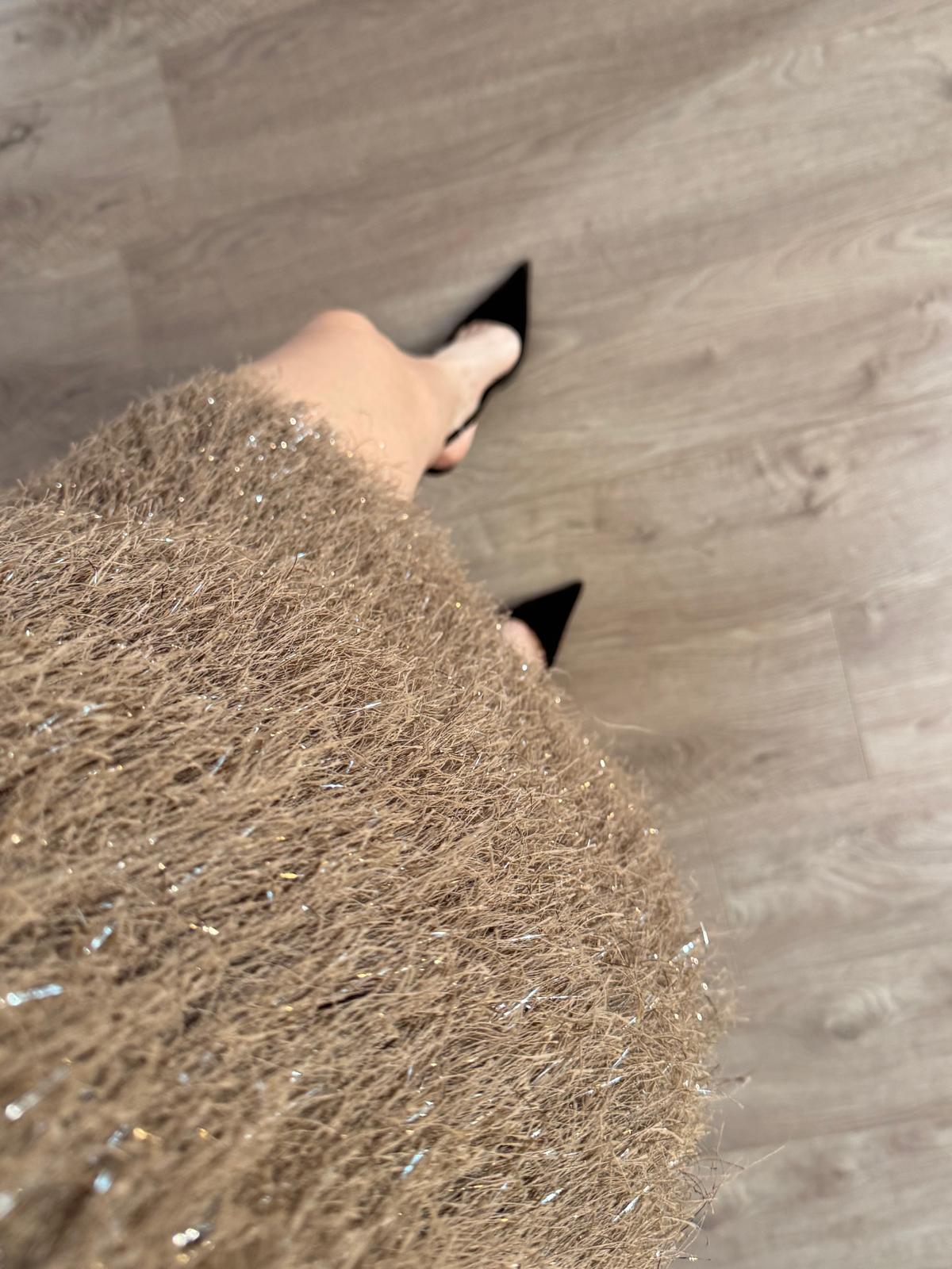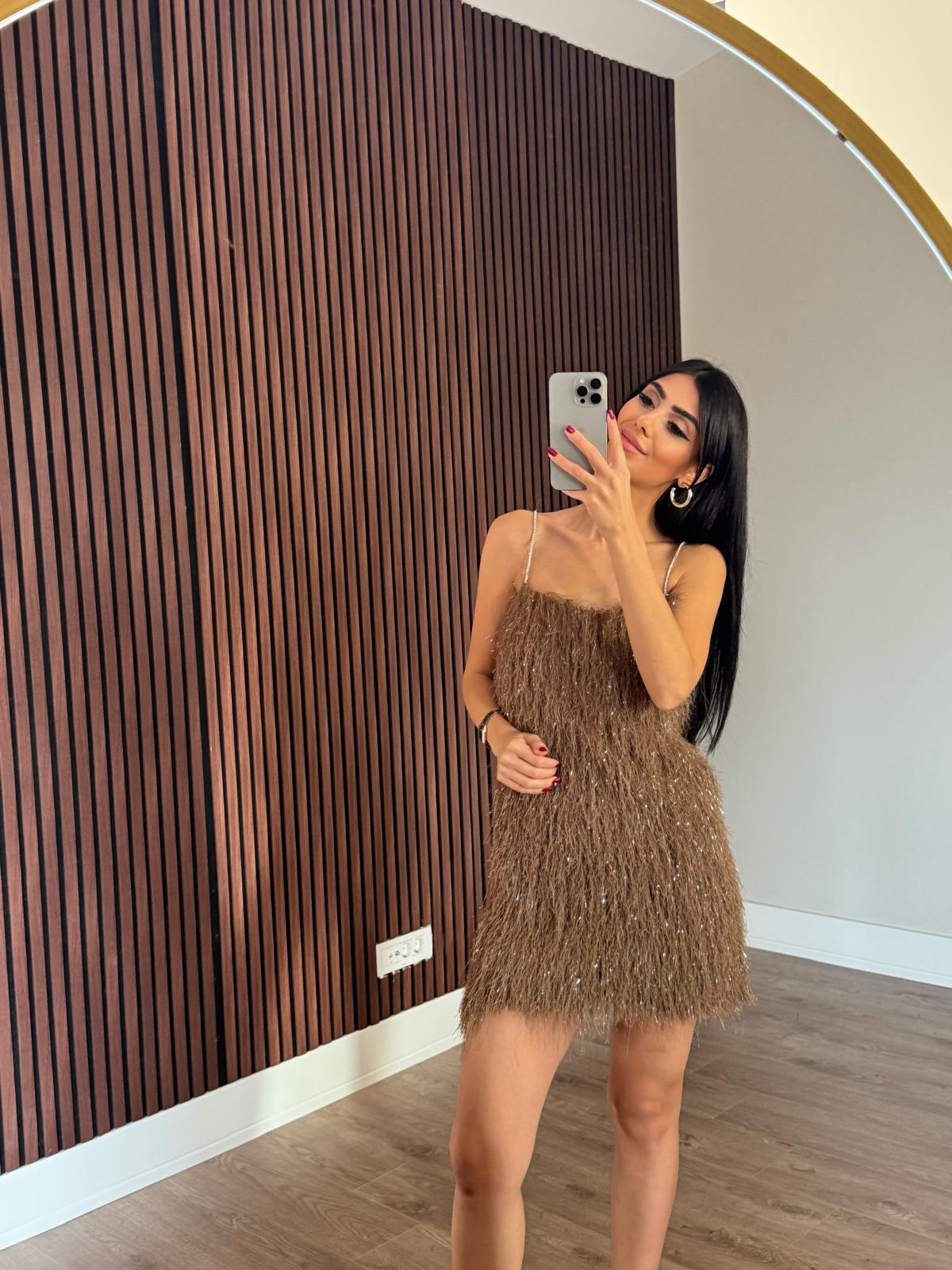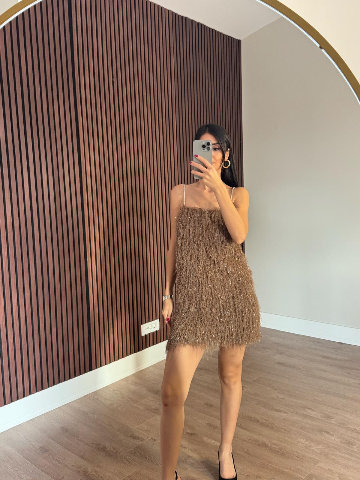 Askılı Saçaklı Kahve Elbise