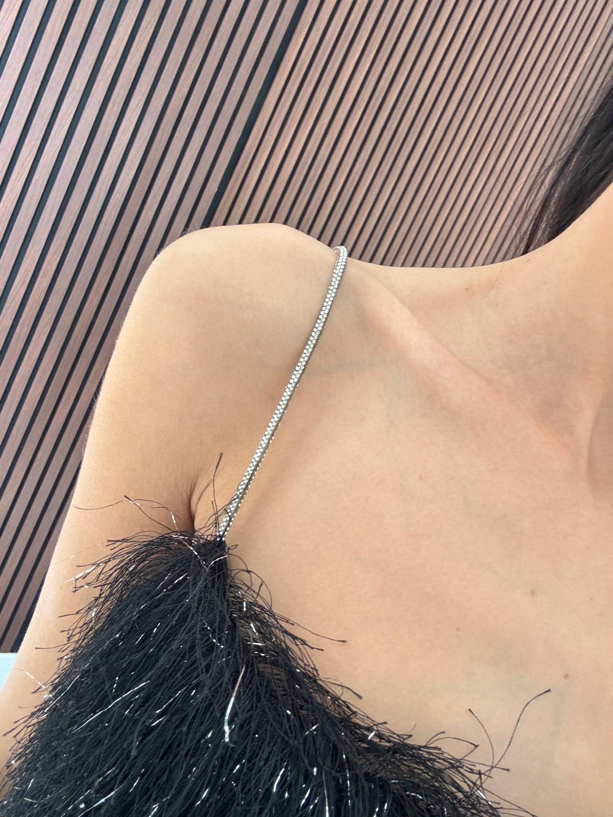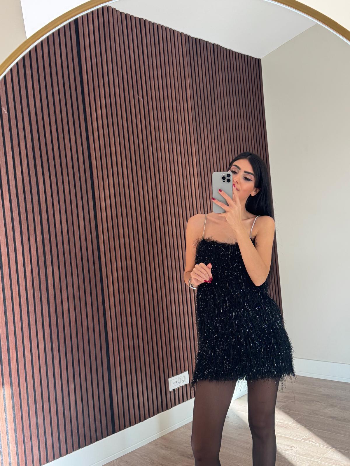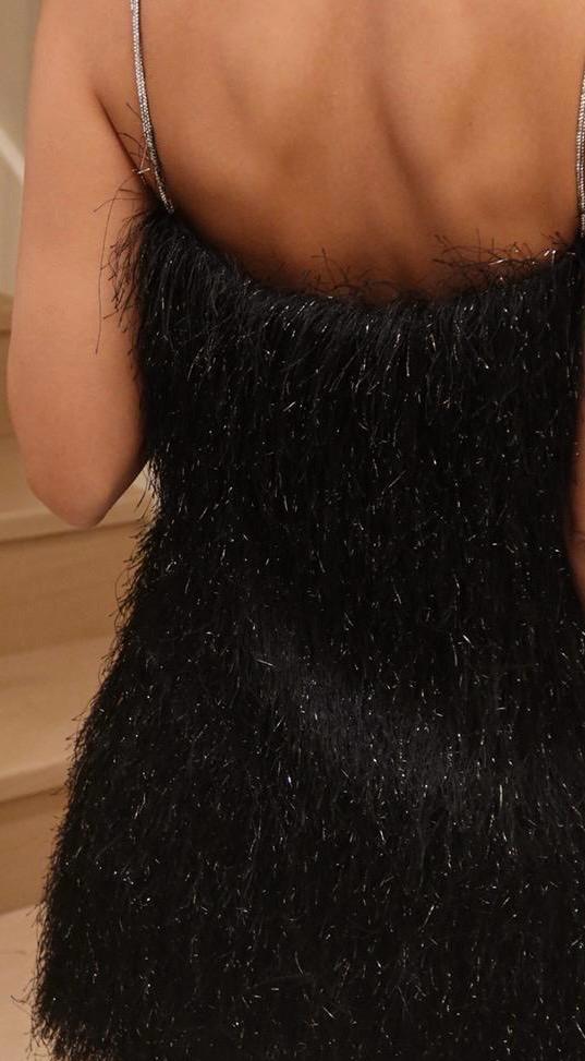 Askılı Saçaklı Siyah Elbise