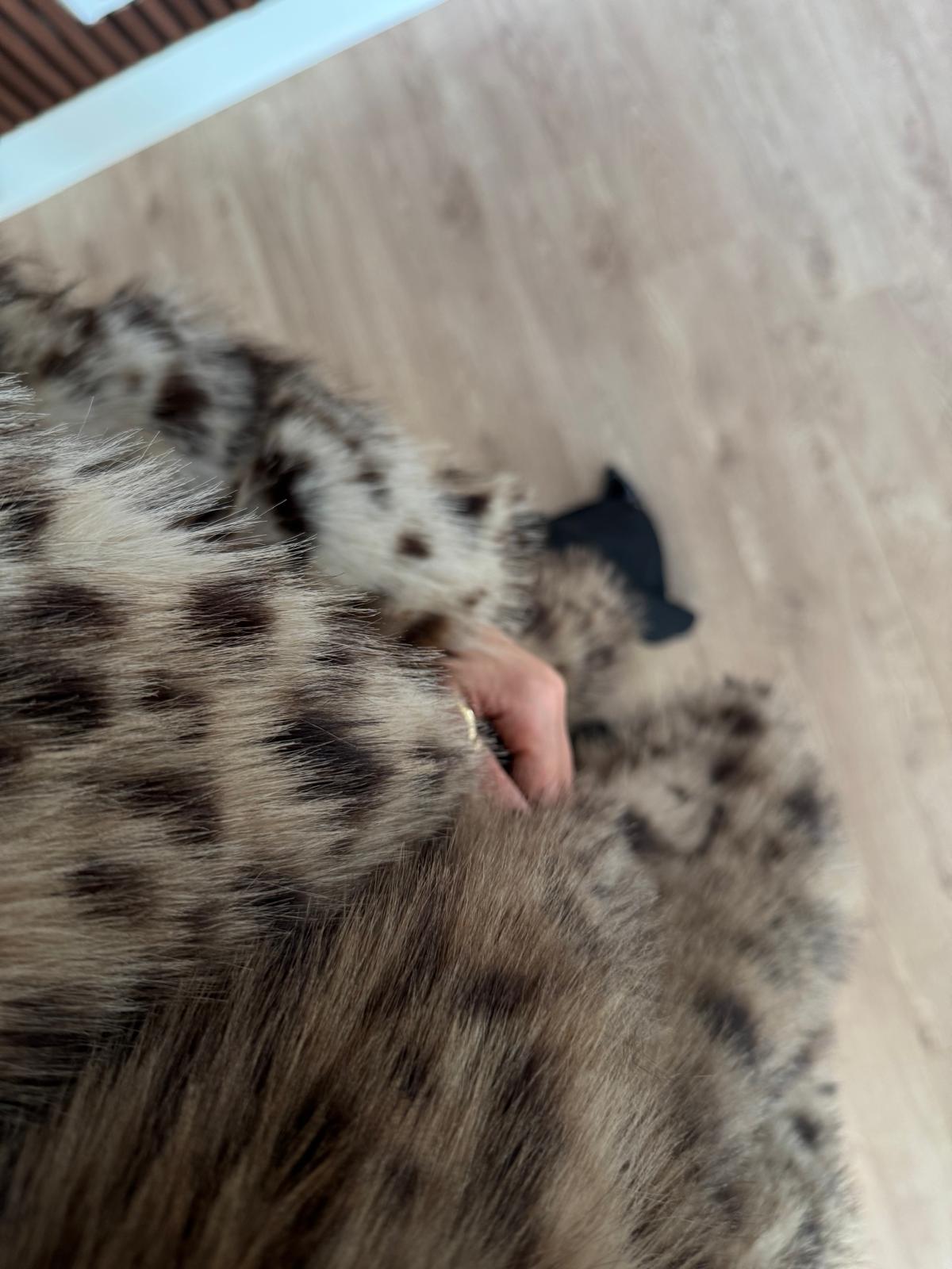 Kahve Leoparlı Desen Yakalı Kürk