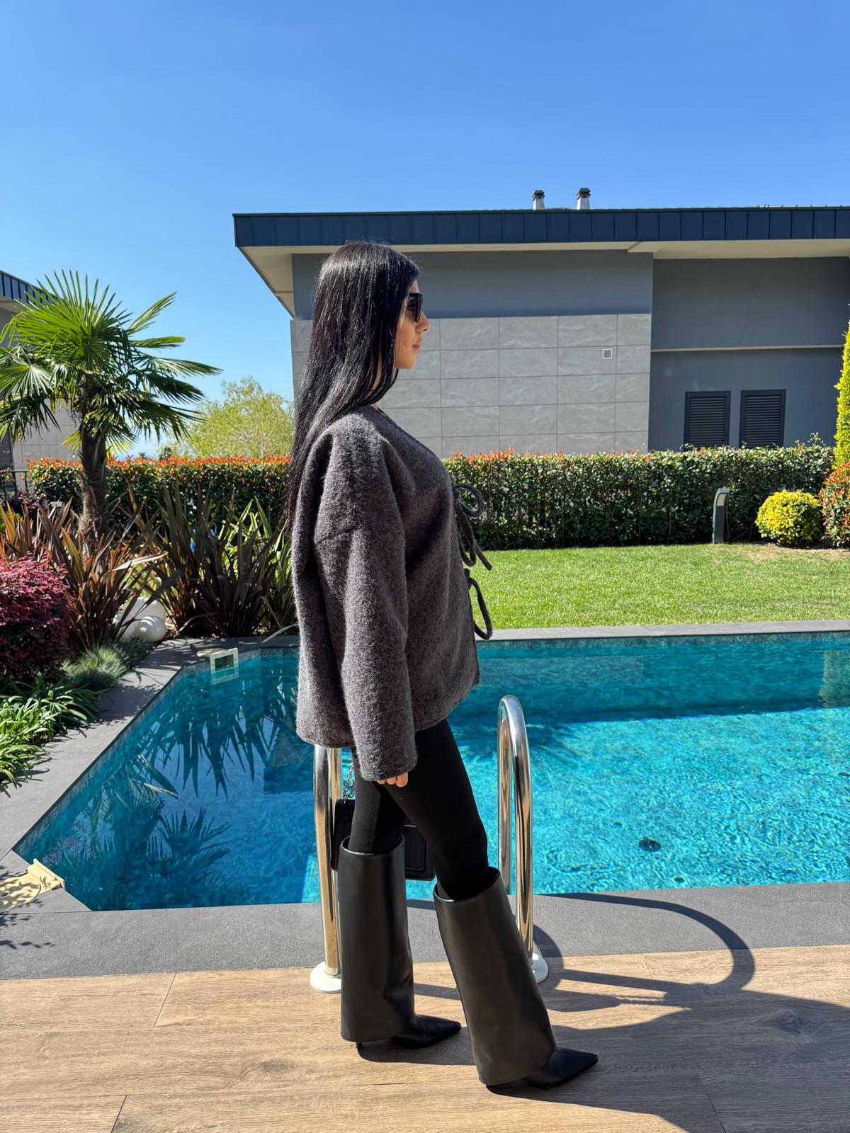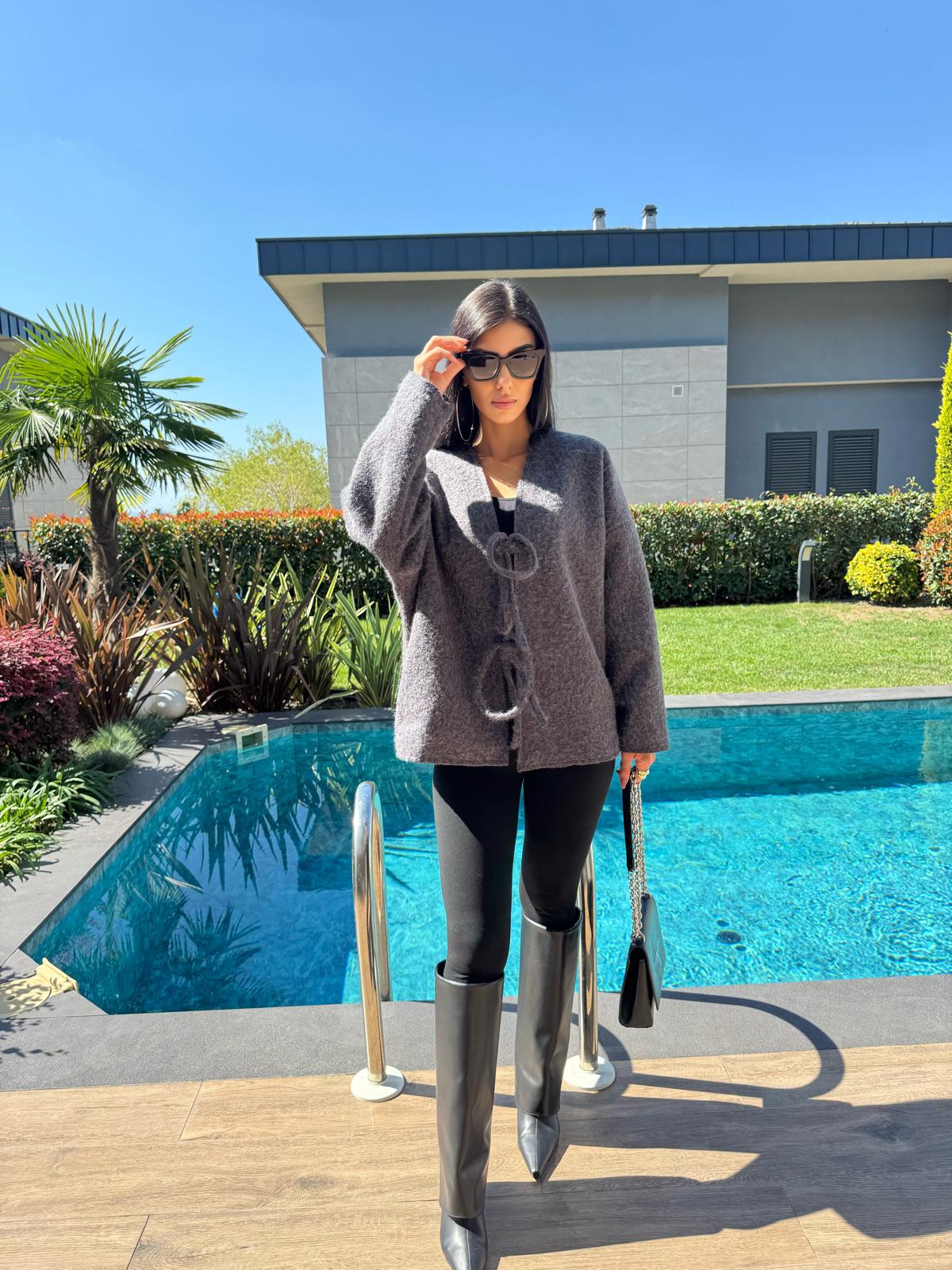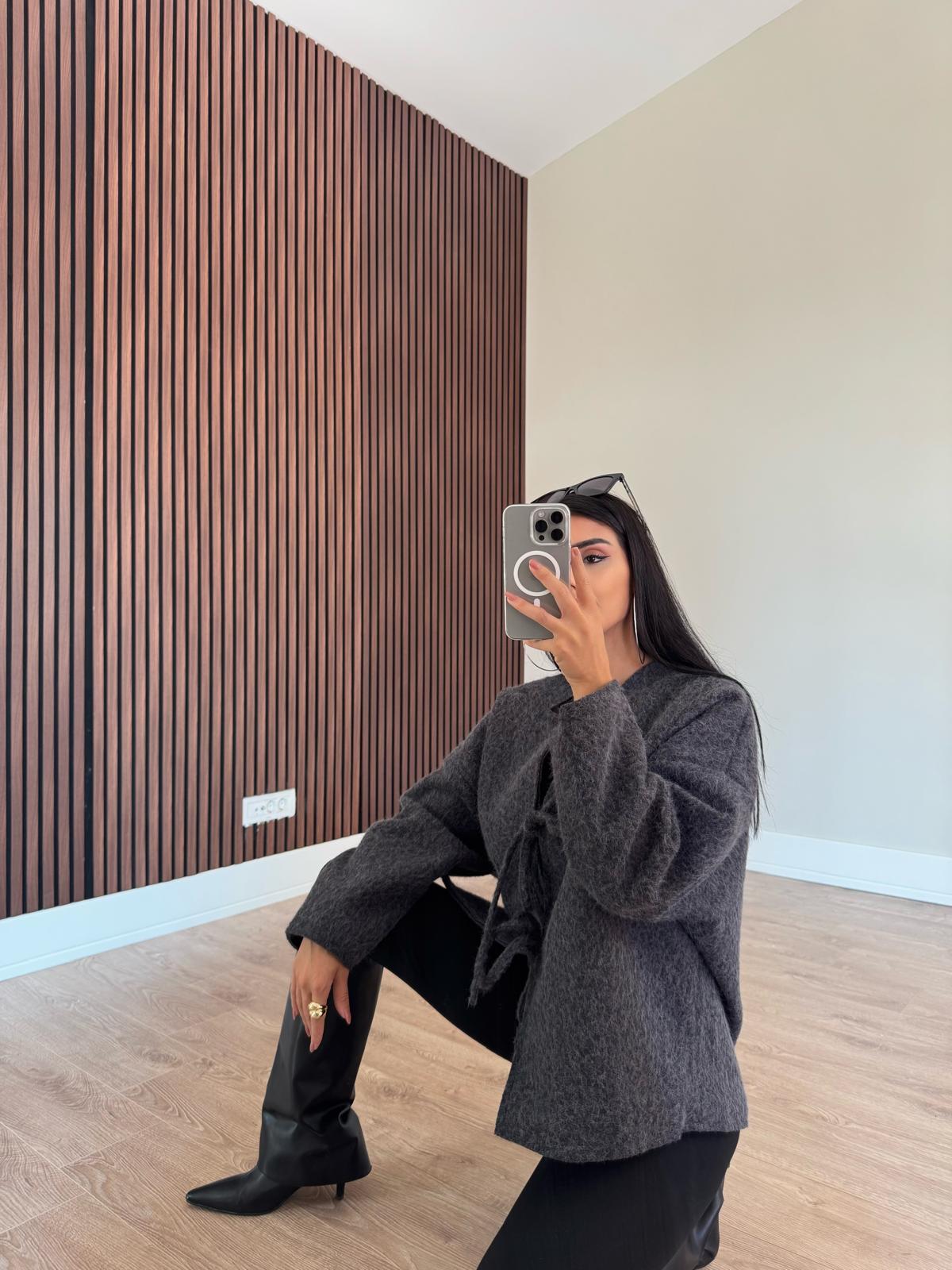 Önden Bağlamalı Kırçıllı Ceket Antrasit