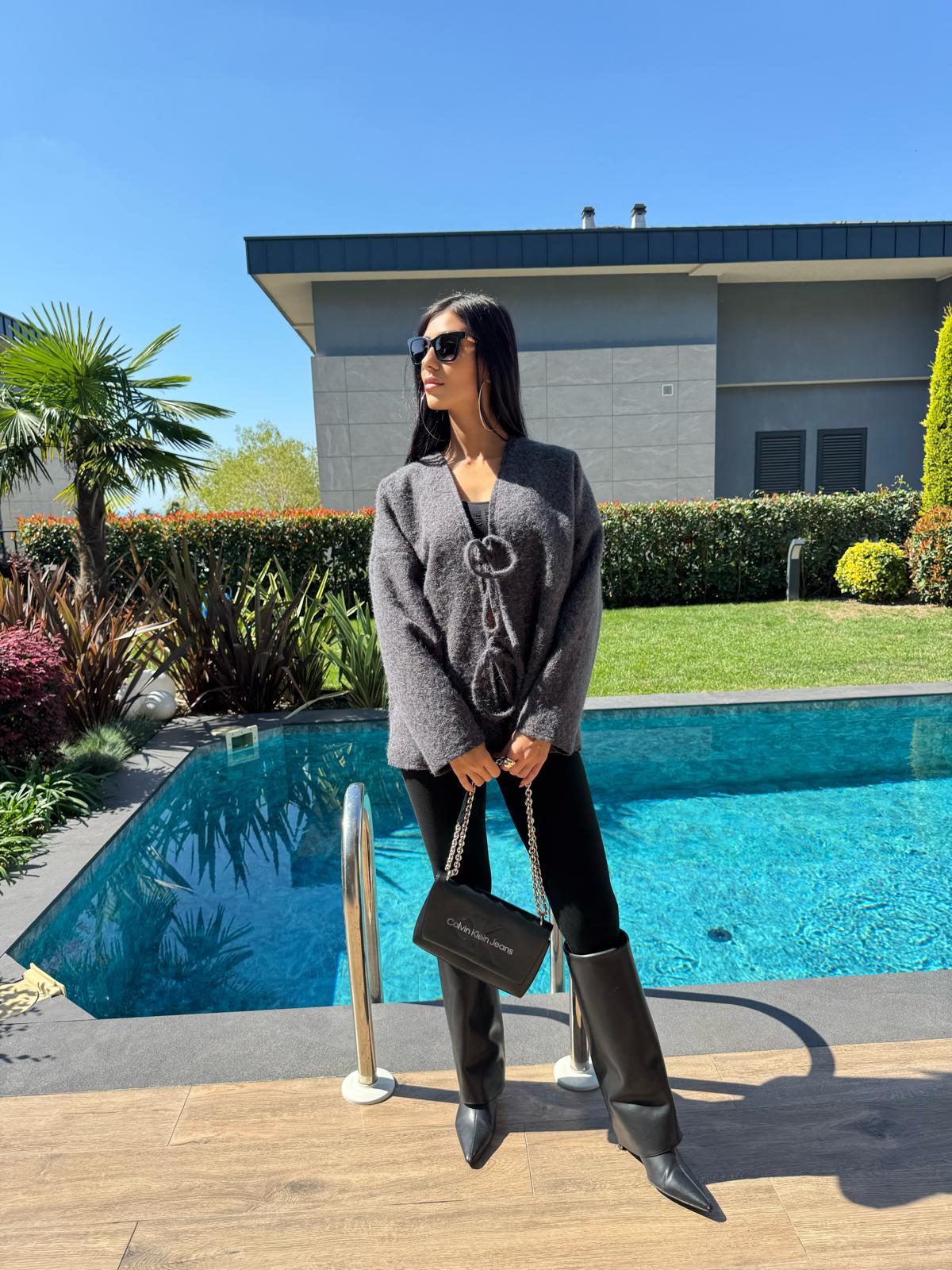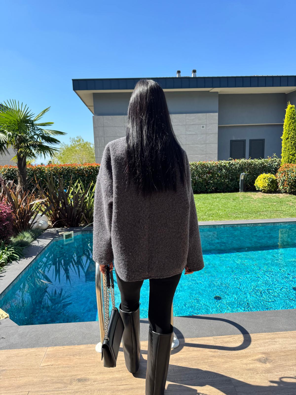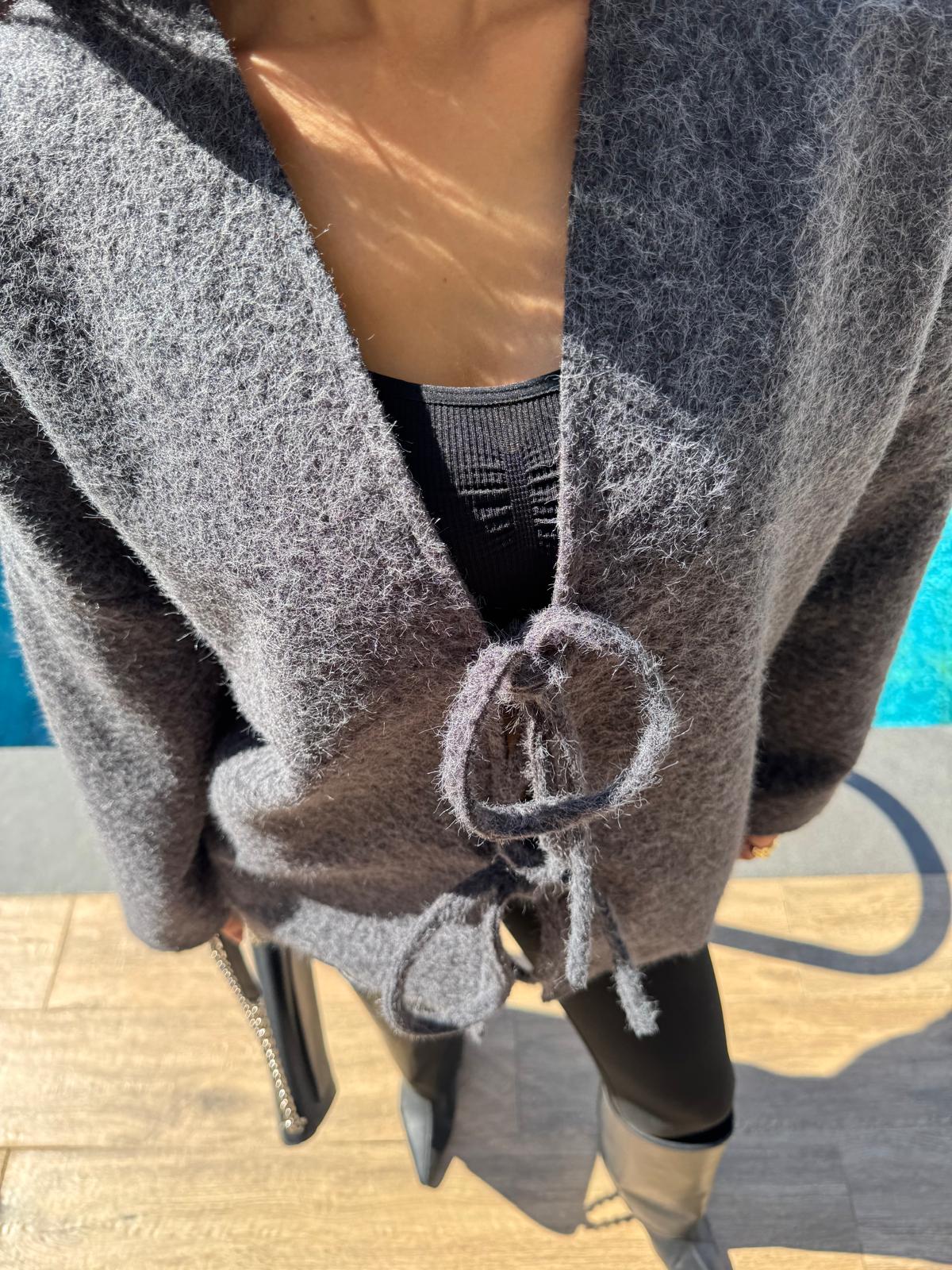 Önden Bağlamalı Kırçıllı Ceket Antrasit