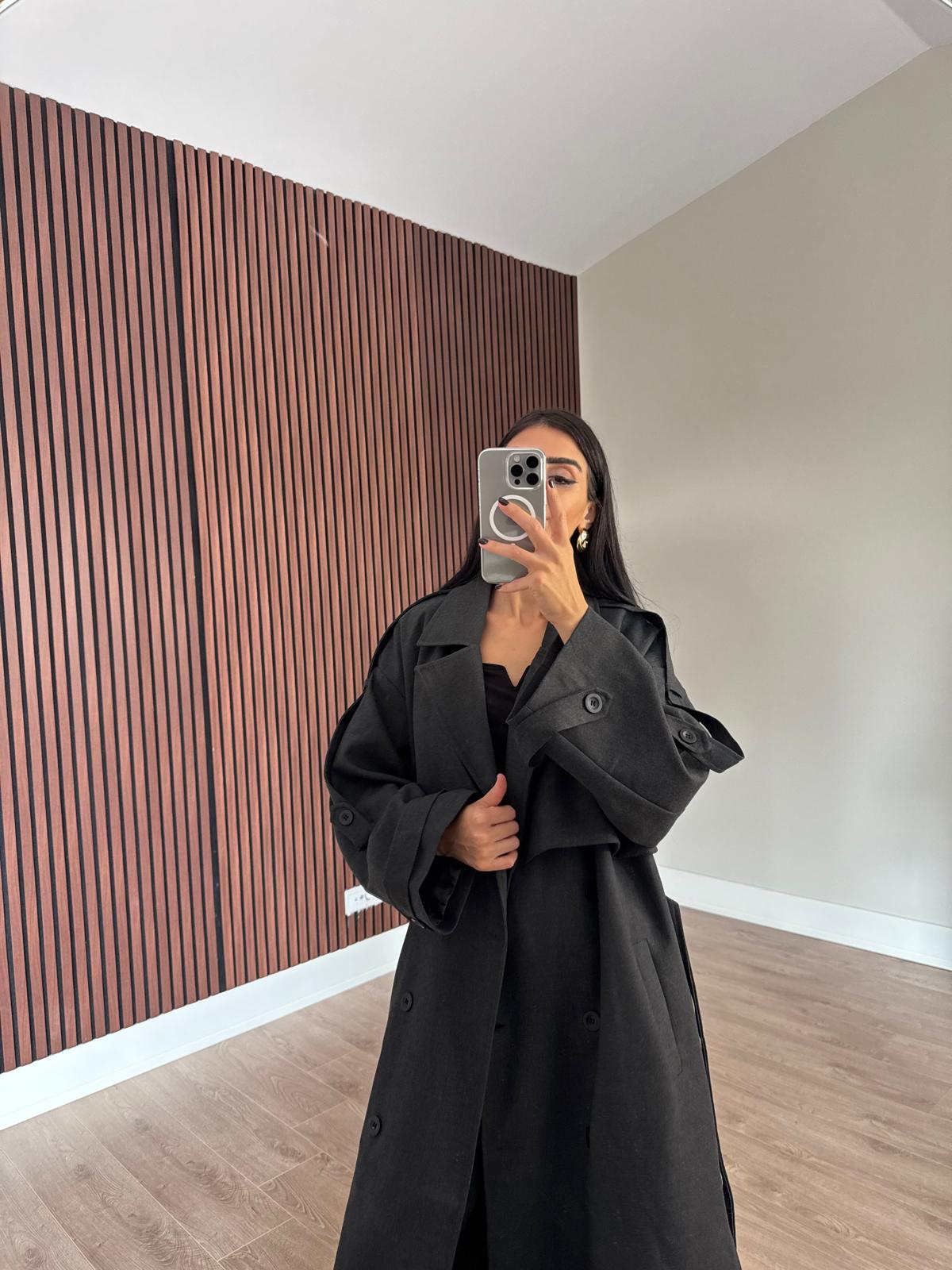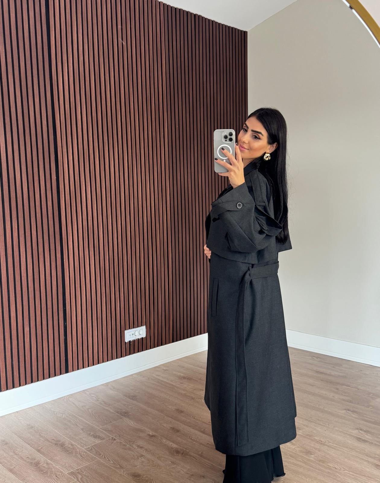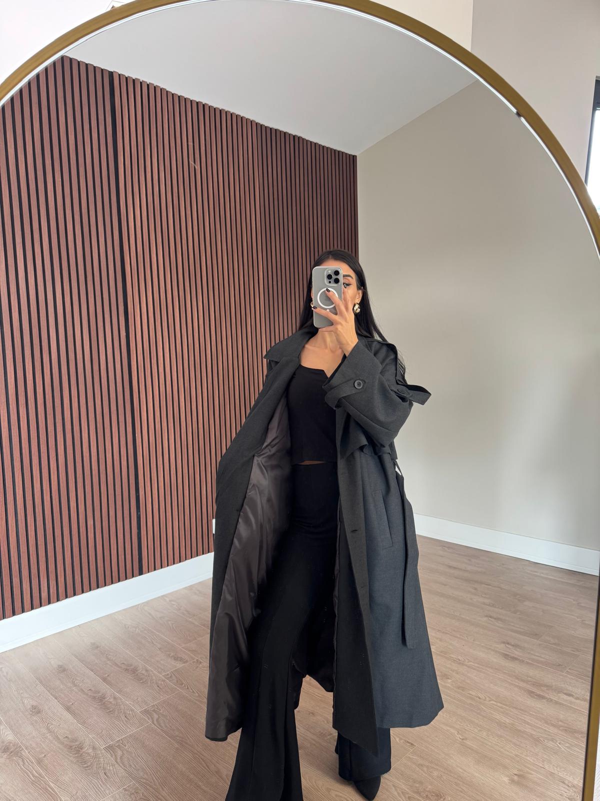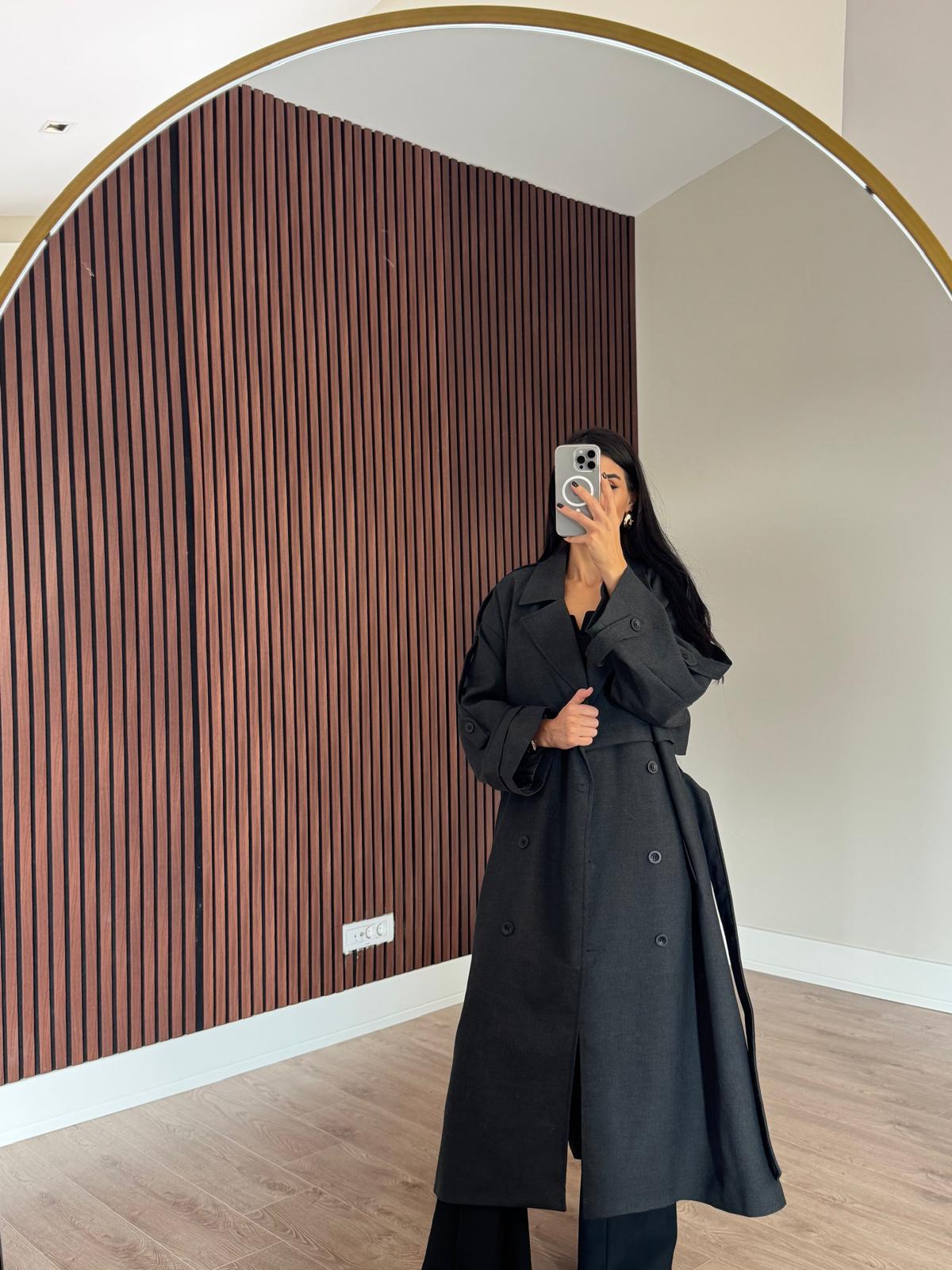 Premium Kalite Poliviskon Kumaş Astarlı Trençkot Antrasit