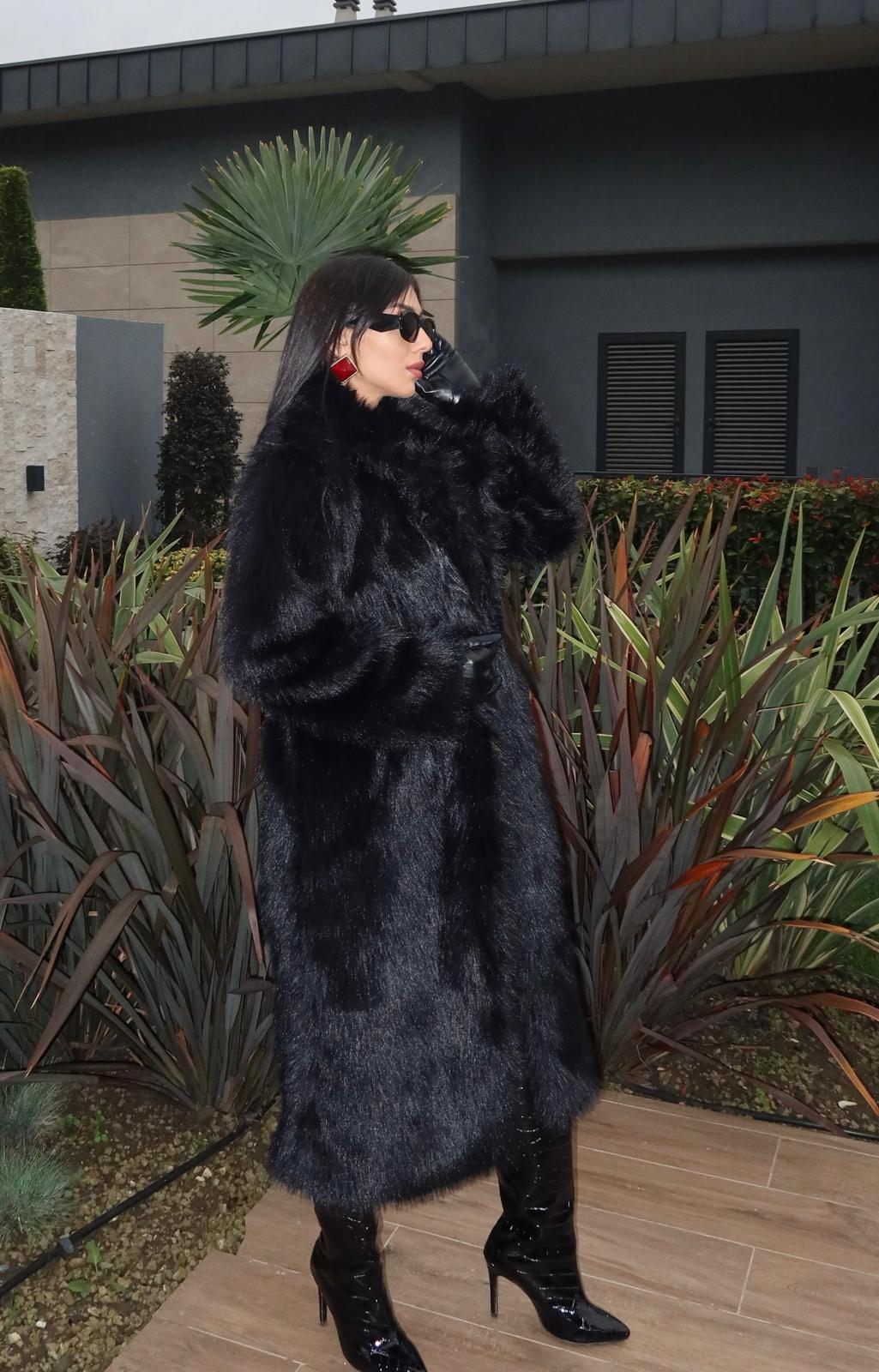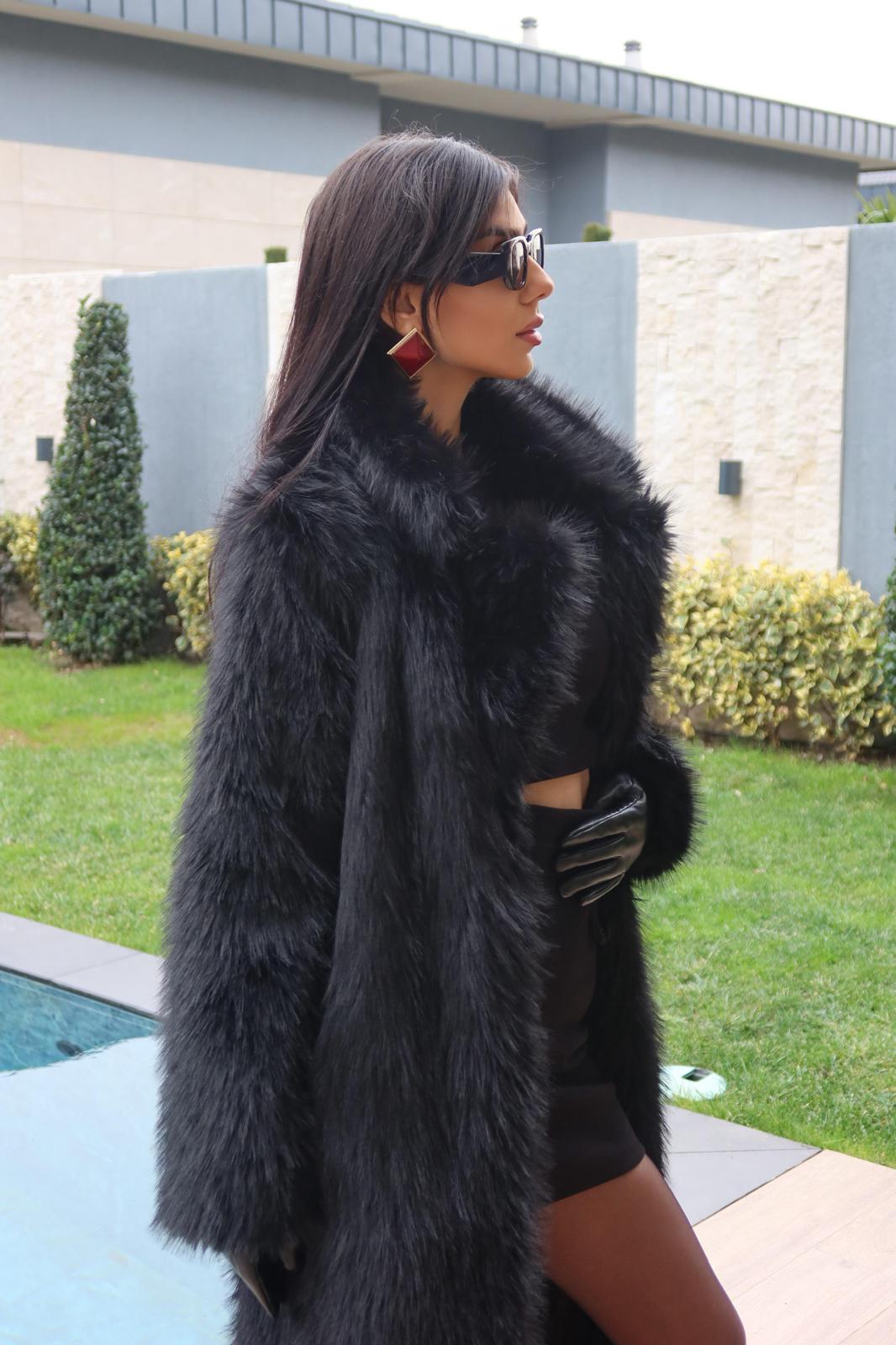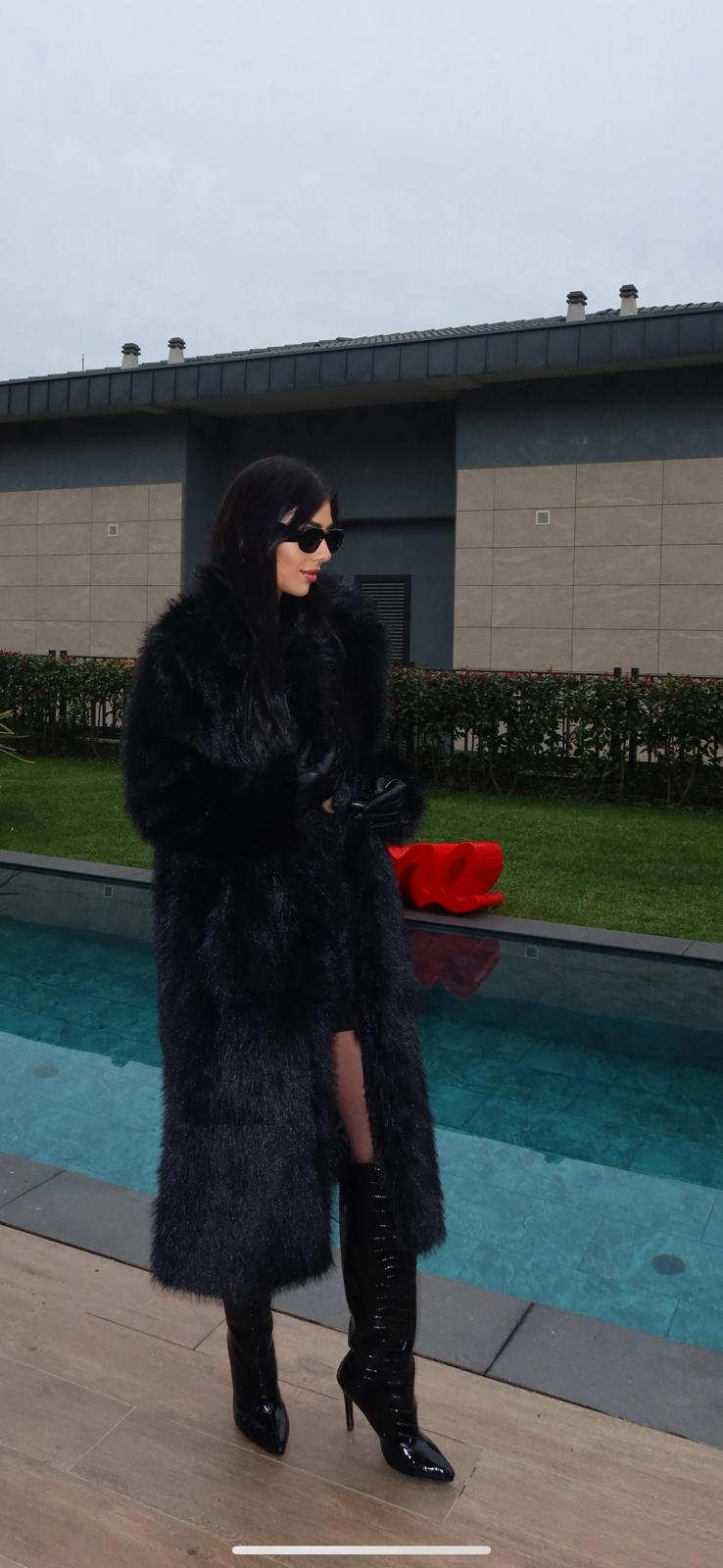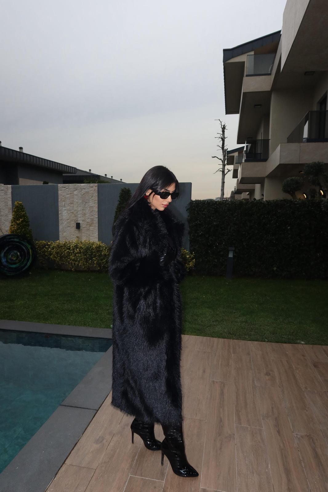 Premium Kalite Uzun Siyah Kürk