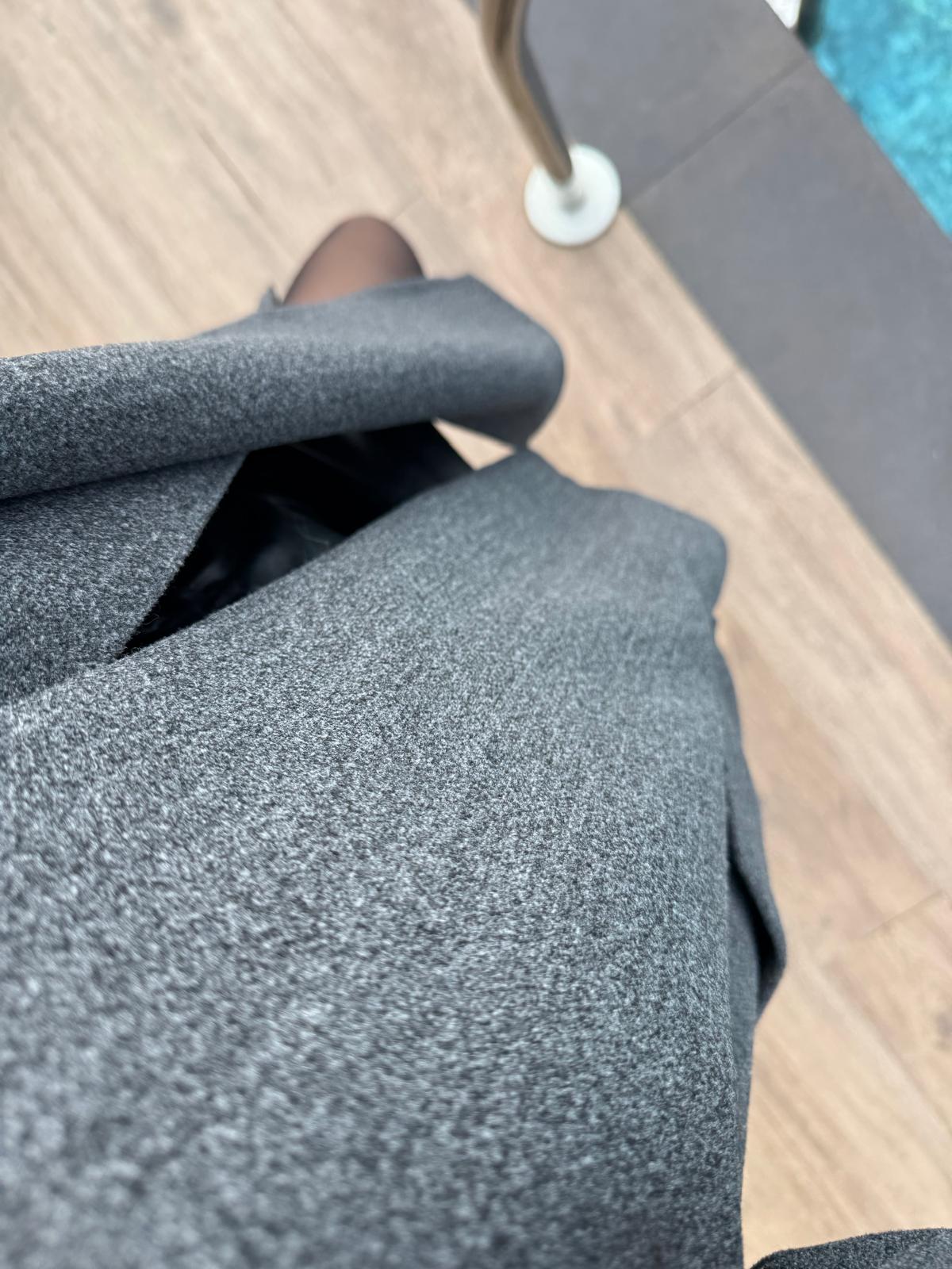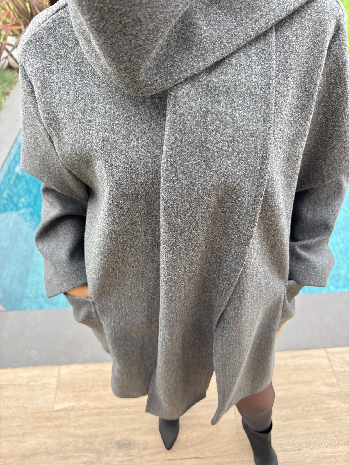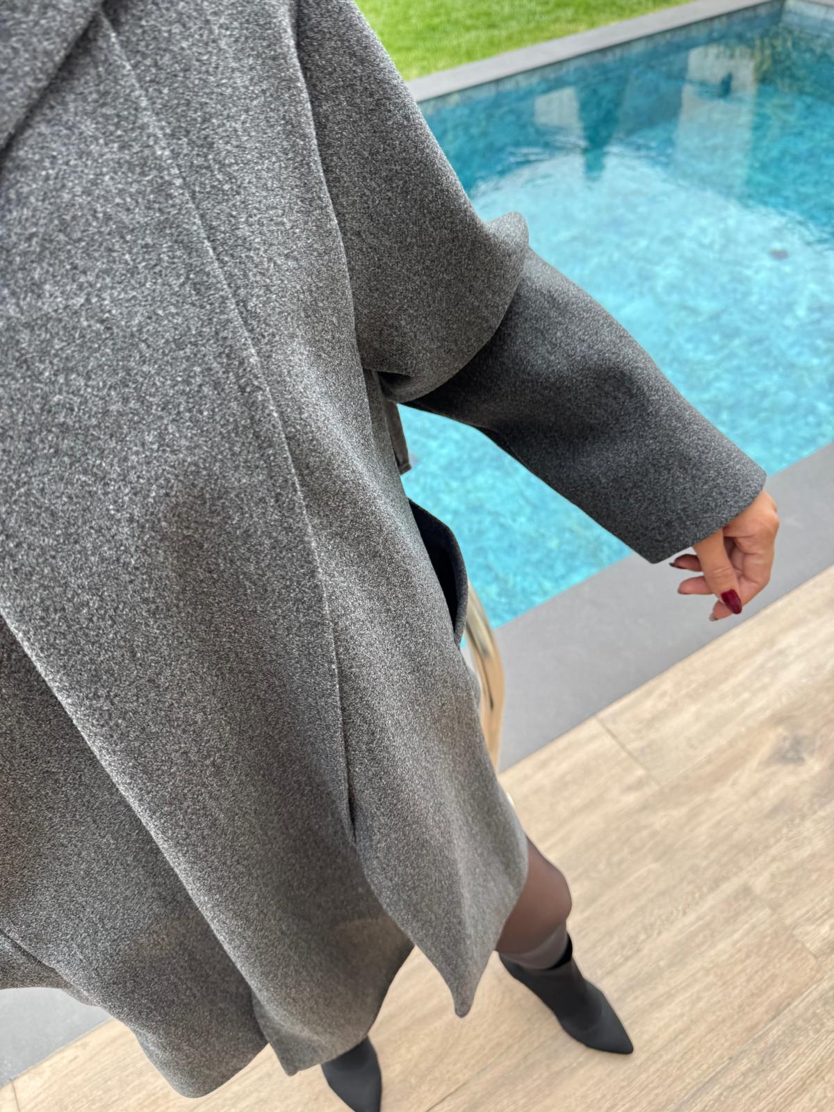 Şal Detaylı Premium Kalite Antrasit Kaşe Kaban