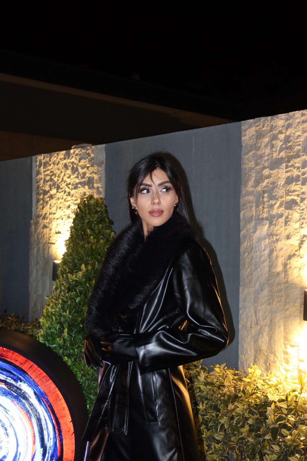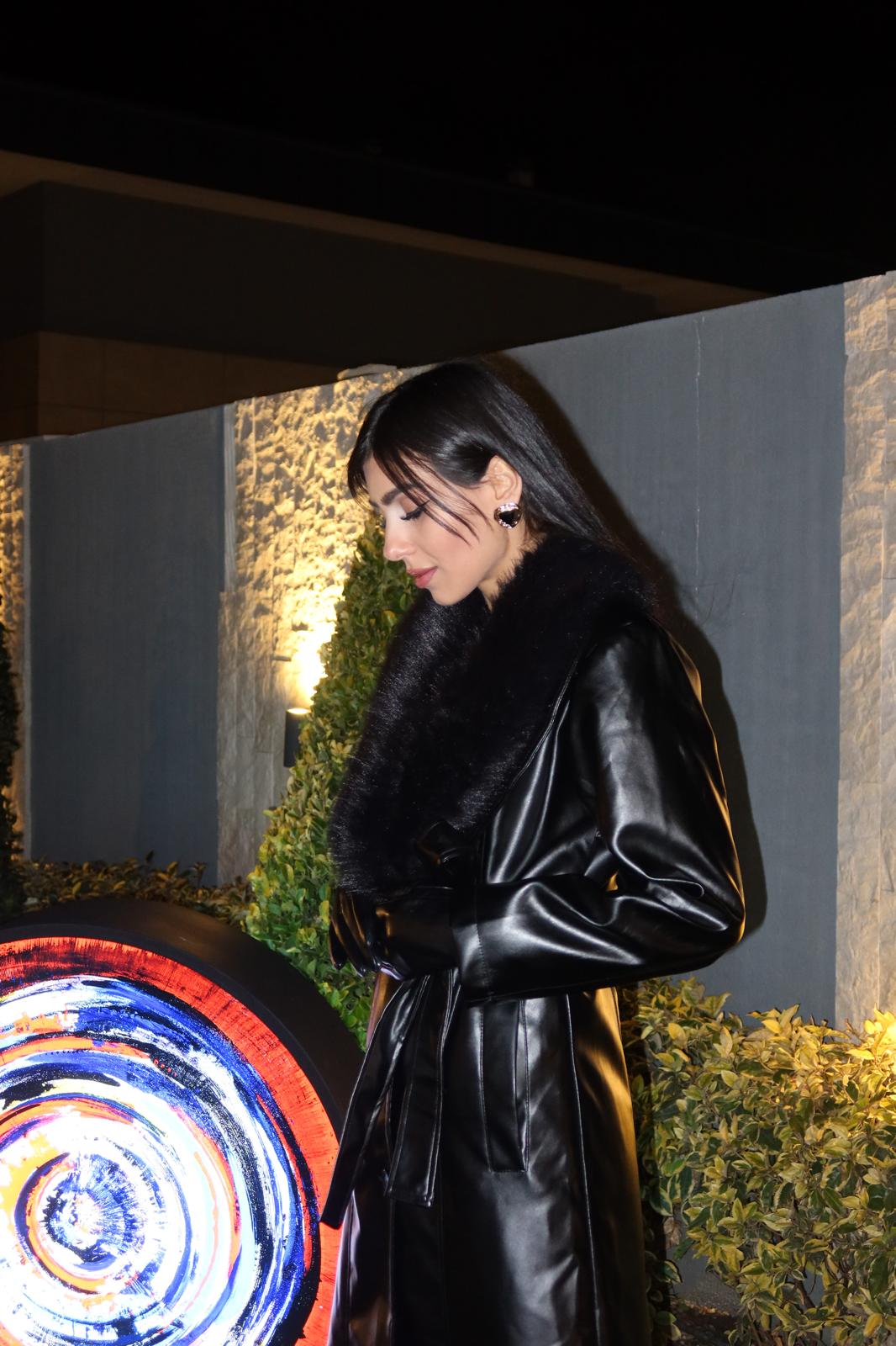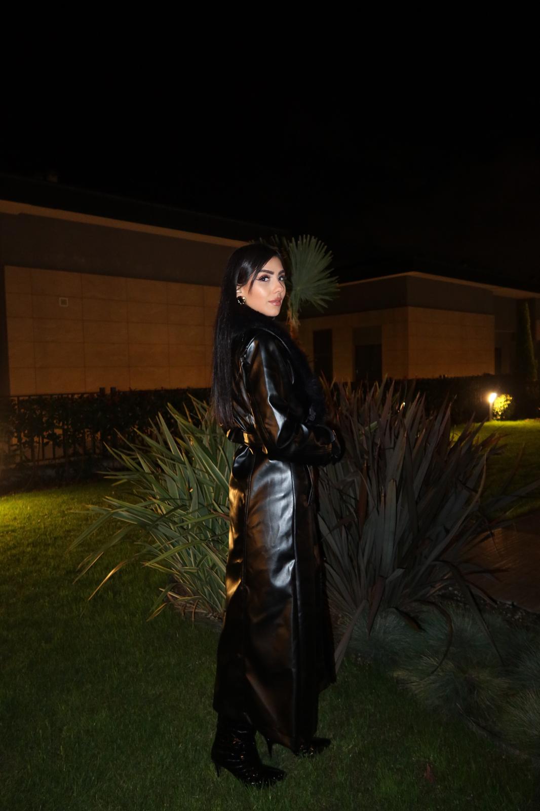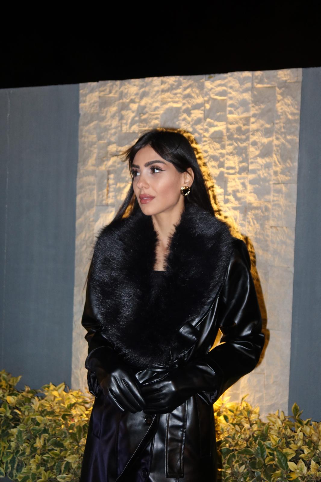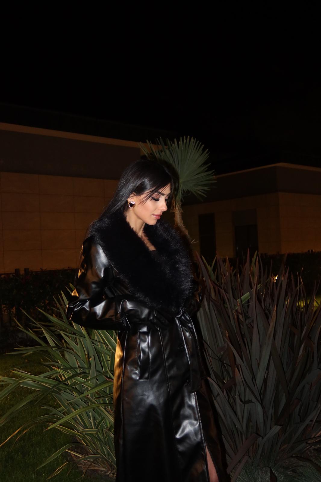 Siyah Buono Yakası Kürklü Deri Kaban